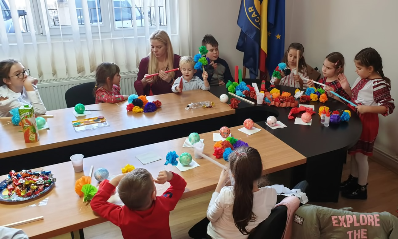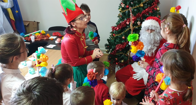 Inițiativa dedicată sărbătorilor de iarnă organizată de filială a cuprins și ateliere de creație pentru copii, unde cei mici și-au pus în valoare talentul artistic pictând globulețe și au lipit sorcove pentru colindat.