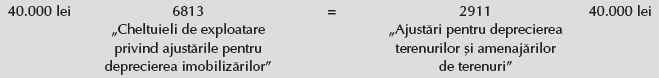 Pierderea din depreciere este egală cu 40.000 lei (150.000 lei – 110.000 lei) și se înregistrează ca o ajustare pentru deprecierea terenurilor: