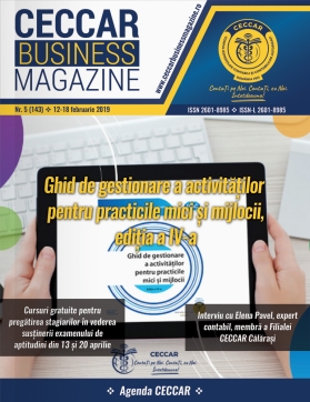 Marți, 19 februarie a.c., începând cu ora 17.30, ACCA, în colaborare cu CECCAR, organizează evenimentul cu tema Noutăți fiscale începând cu ianuarie 2019. Alina Mănescu – Colman Tax – va prezenta noutățile fiscale ...